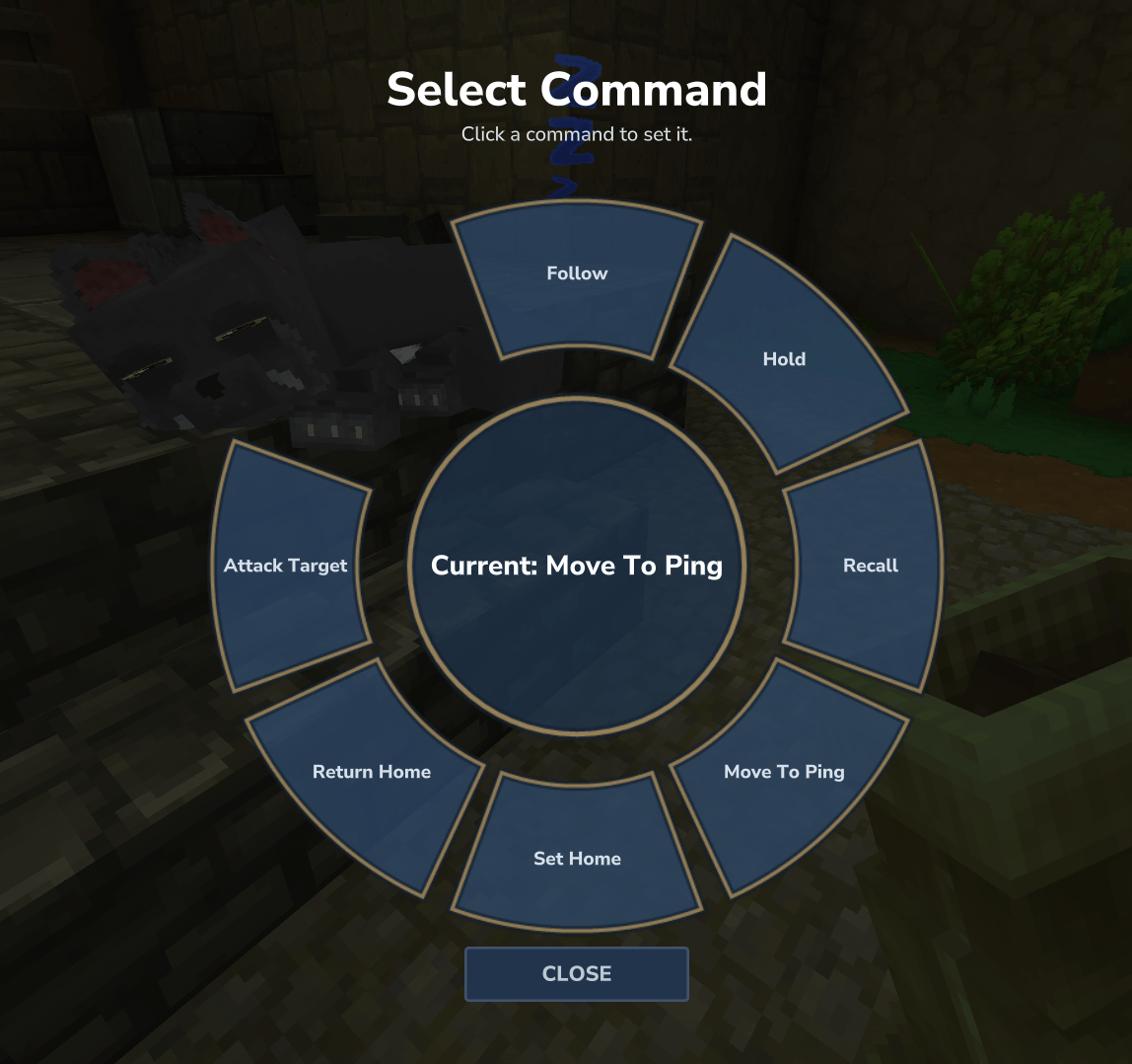 - Interact directly to cycle basic modes (Follow / Defend / Stay).