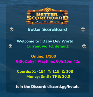 Better Scoreboard adds a clean scoreboard on the right side of the screen for all players, showing real-time server and player info without cluttering the HUD. Lightweight and server-friendly.