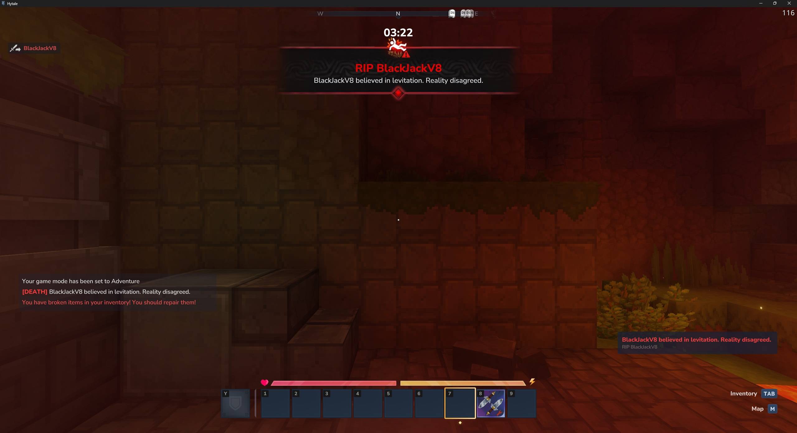 fire,fall,projectile, etc.) and pull jokes/titles from the configured locale. - Styled chat fallback - Every death also publishes the subtitle in chat with a bold red