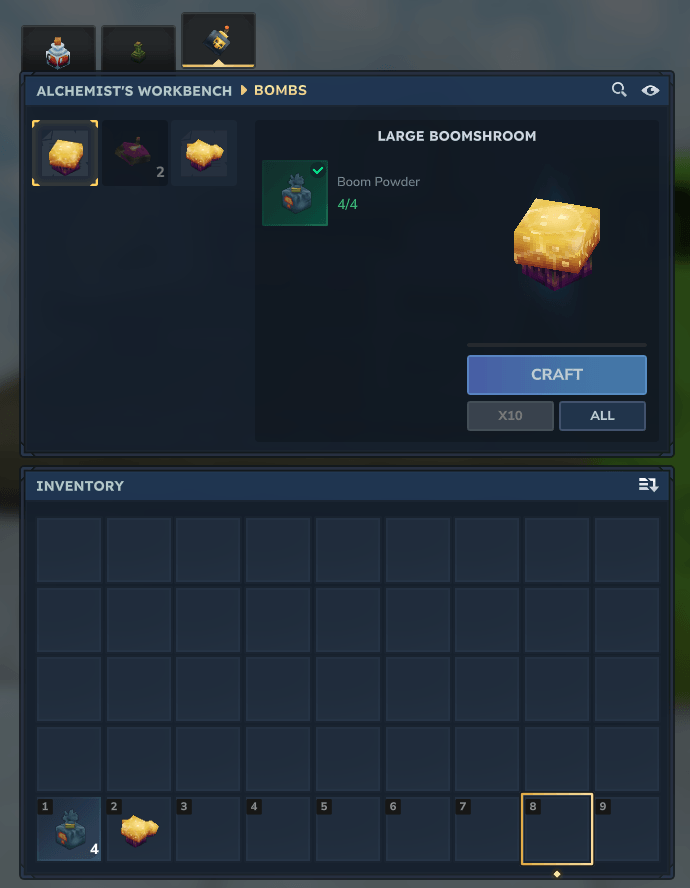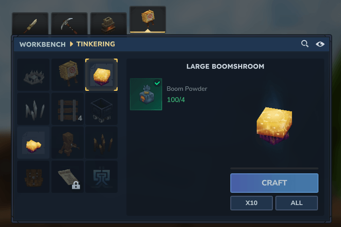 Craftable Boomshrooms