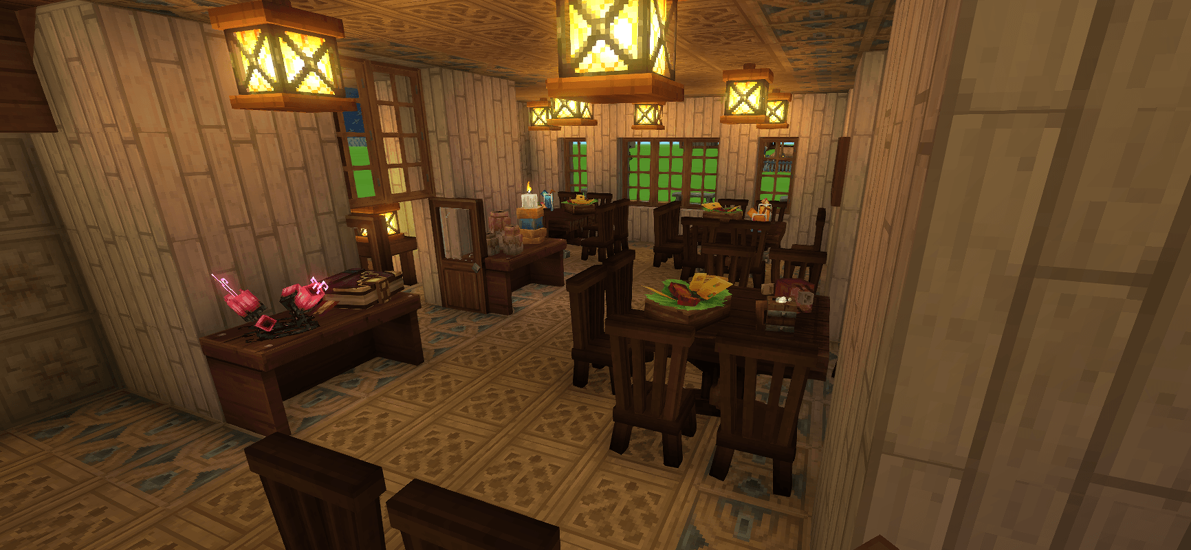 CurseForgeA beautifully done restaurant and spa, complete with dining, a tavern, an outdoor spa, workbenches and storage. Great addition to any village or server.