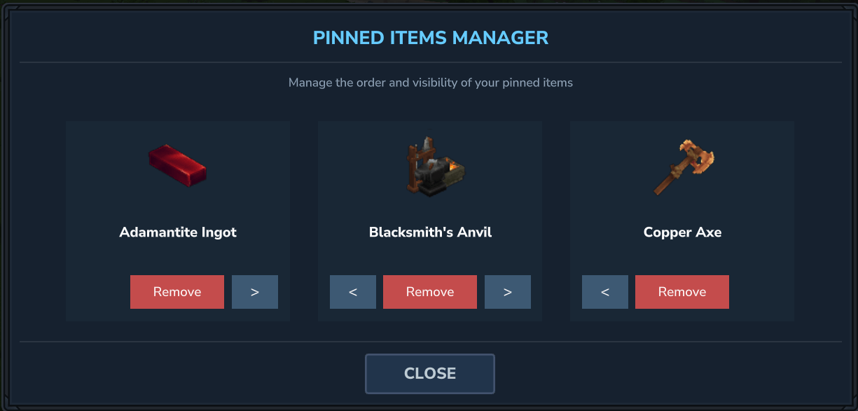 Pinned items on HUD