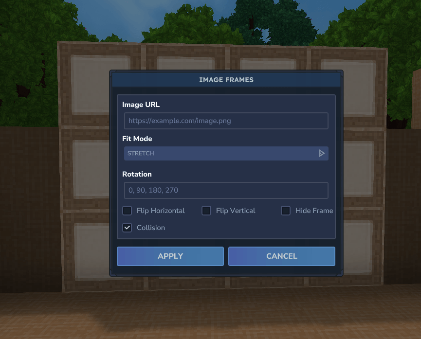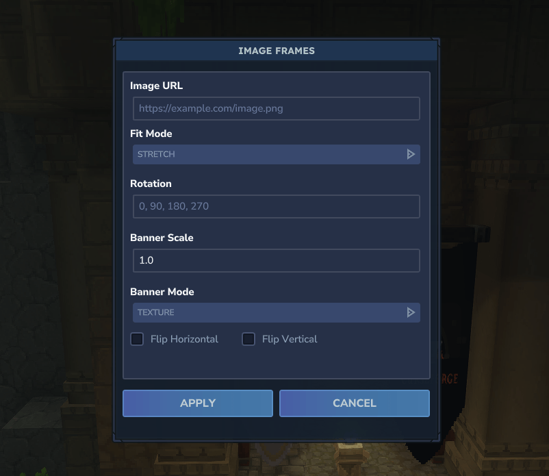 ImageFrames is a Hytale mod that facilitates the display of custom images on blocks within the game world. It allows players to define image sources (URLs), dimensions, and orientation for immersive decoration.