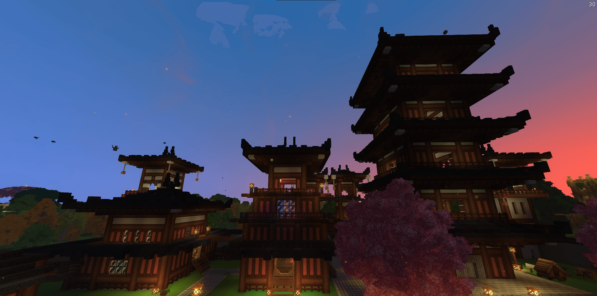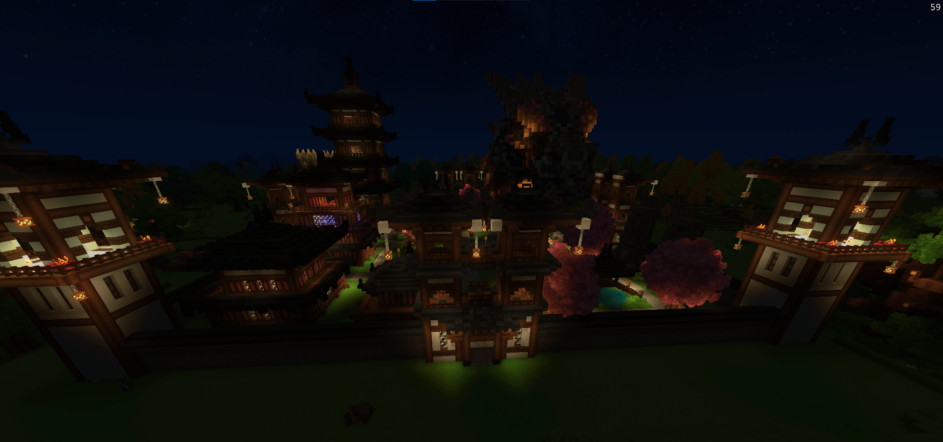 CurseForgeDecorated Japanese village, functional, storage tower, decorated house, guest house, dragon base for portals.