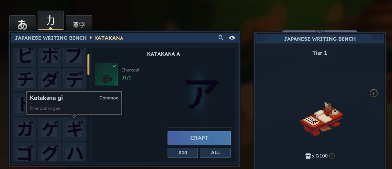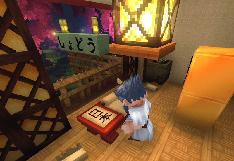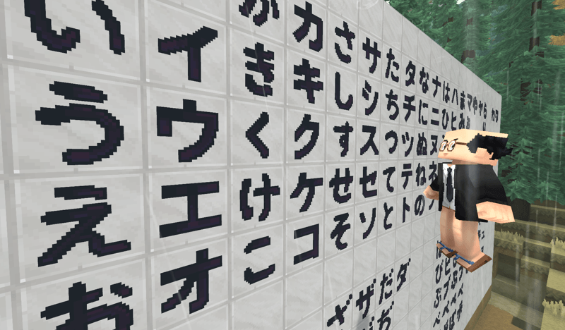 Craft Hiragana, Katakana and Kanji to place on blocks in your world, use them to name things and places helping with immersive Japanese language learning.