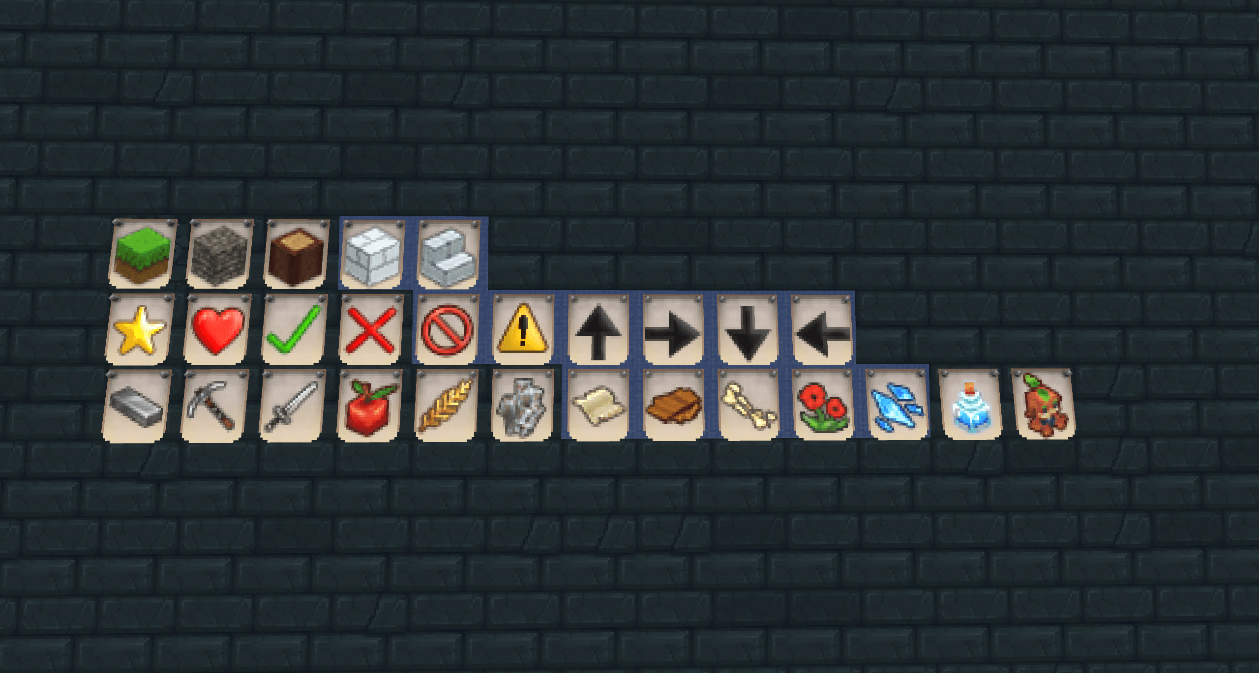 Stay organised with chest labels! Place signs with items, blocks and other symbols around your house! An alternative to item frames and signs.