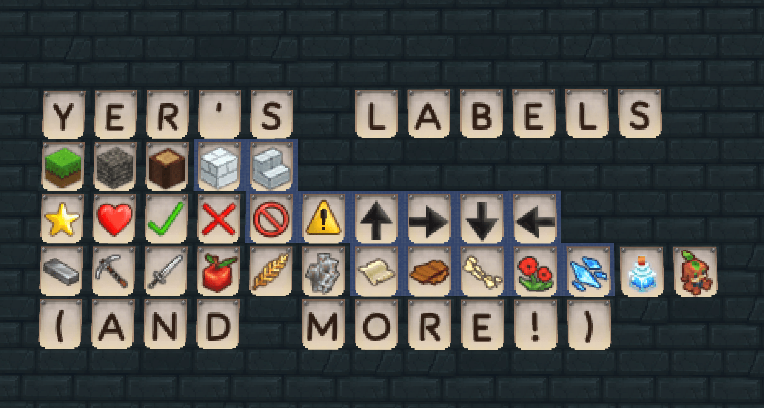 CurseForgeStay organised with chest labels! Place signs with items, blocks and other symbols around your house! An alternative to item frames and signs.