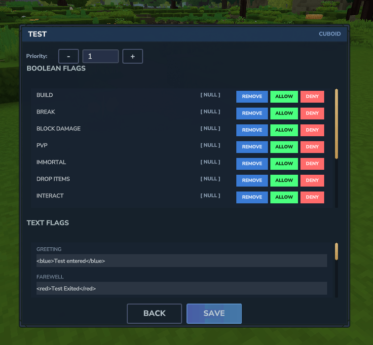 Protect areas on your server, get full control with flags similar to WorldGuard on Minecraft. Control PvP building, player interactions and much more with simple, clear rules.