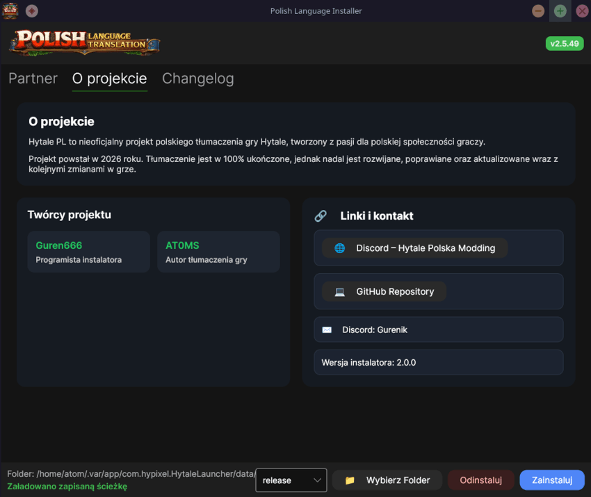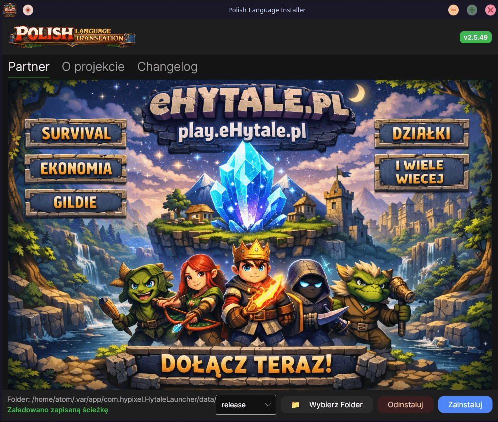 CurseForgePolish translation for Hytale with a smart installer that makes installing, updating, and managing the language pack simple and effortless. The game is fully translated (100%), and fully supports Polish characters such as ą, ć, ę, ł, ń, ó, ś, ż, ź.