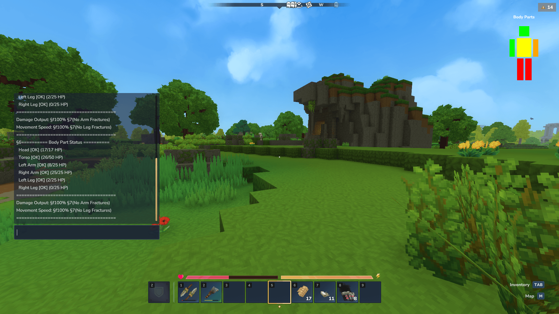 Shows limb health and injuries in chat