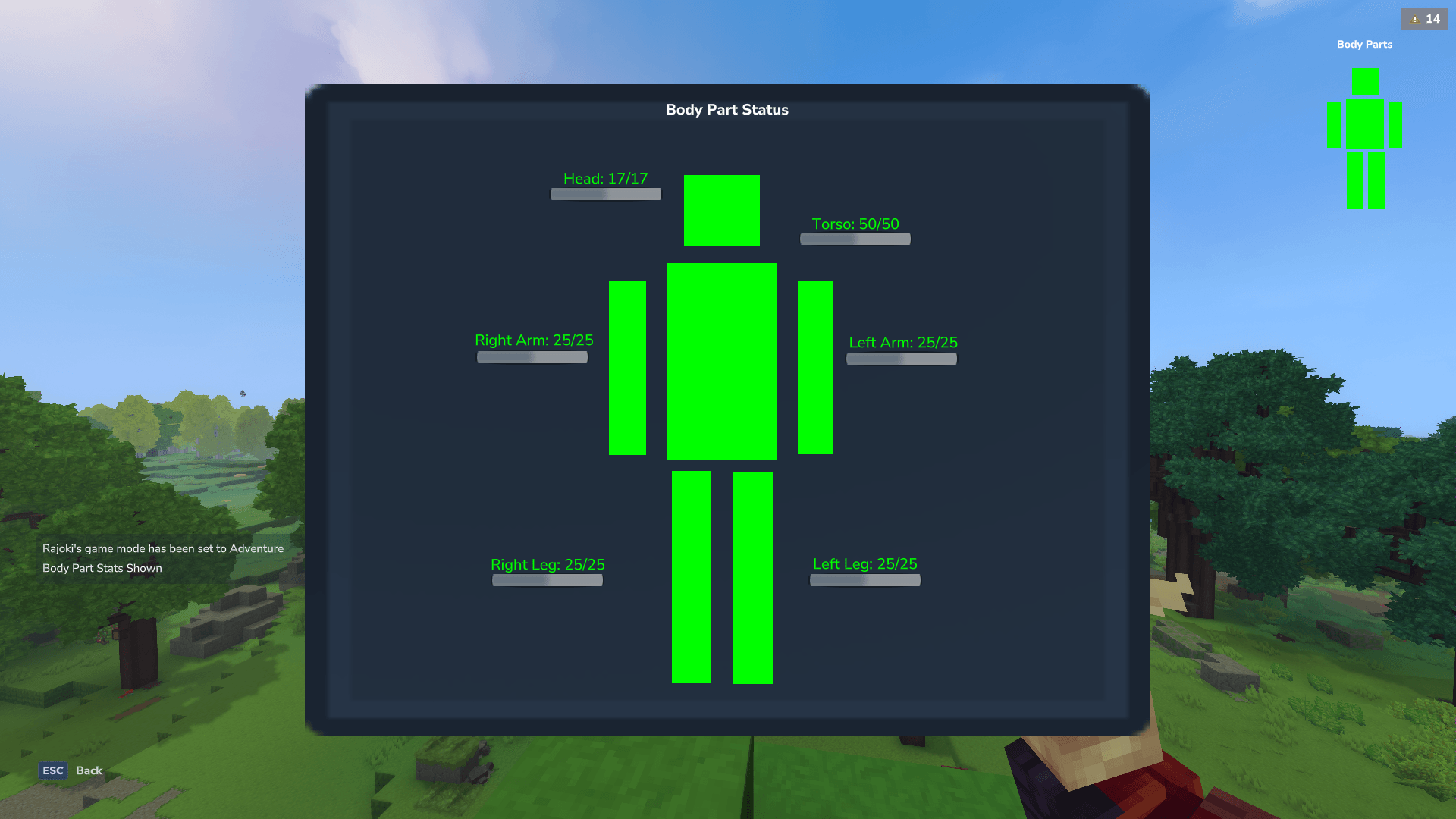 Your character now has individual body parts: