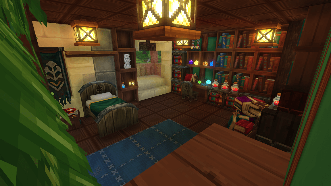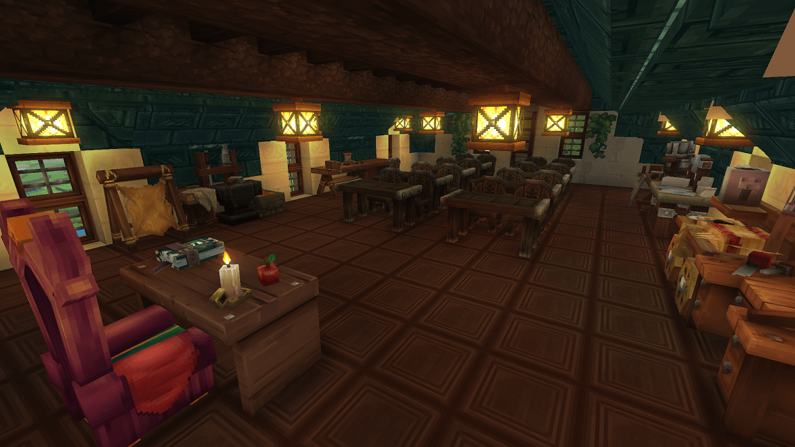 CurseForgeAn exclusive Archmage’s School for the elite, featuring a grand library, classroom workbenches, kitchen, private living quarters with balcony, and a guarded attic—protected by magical animated armor.