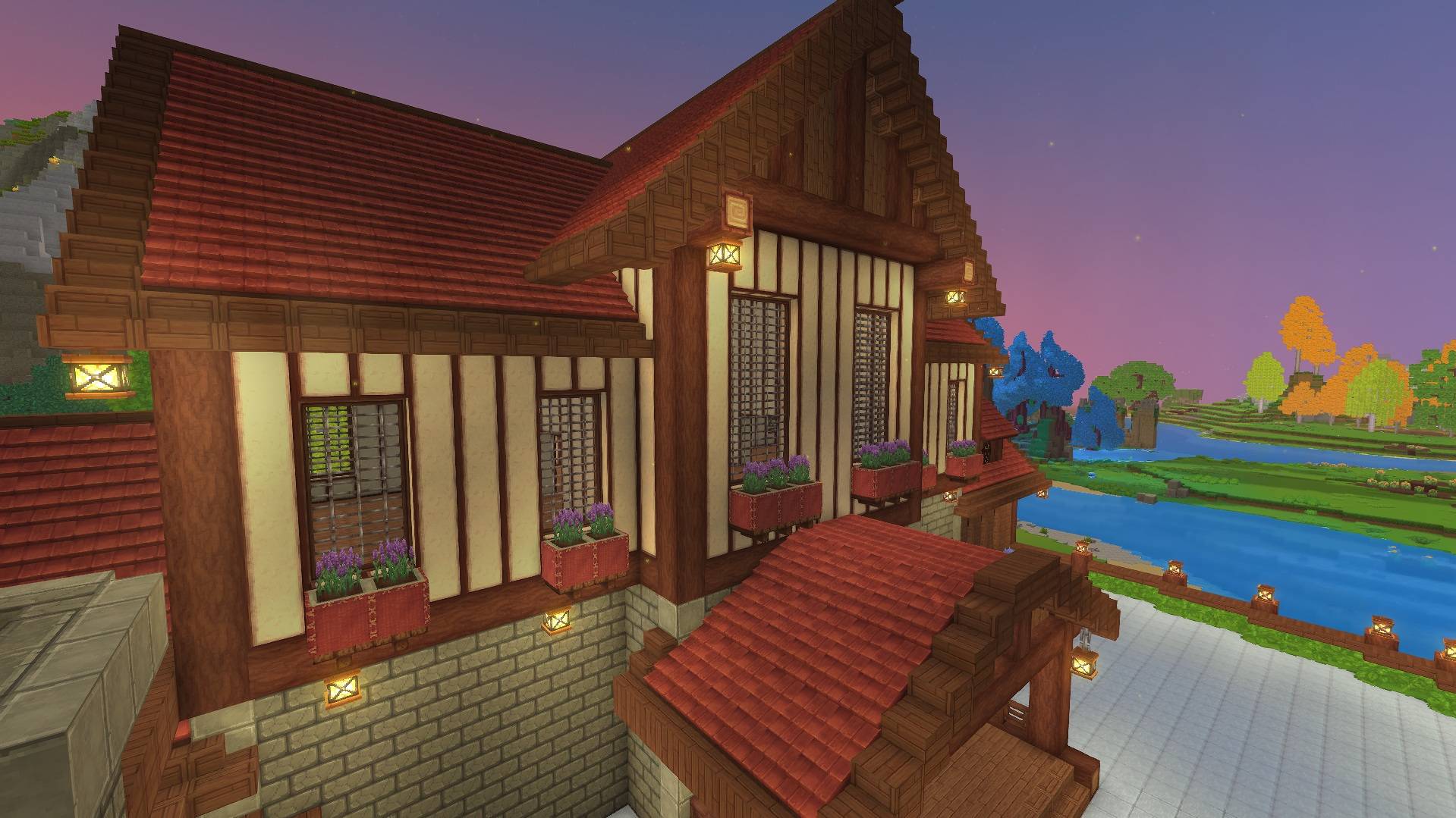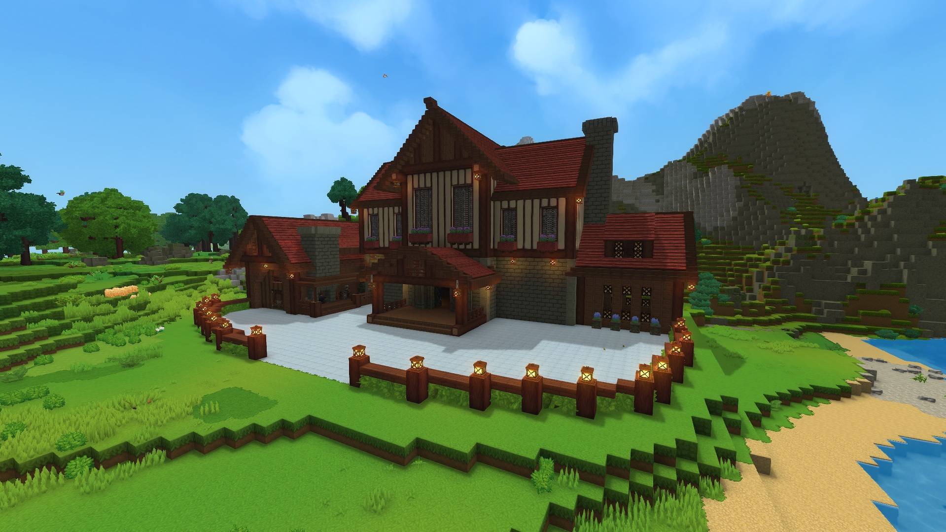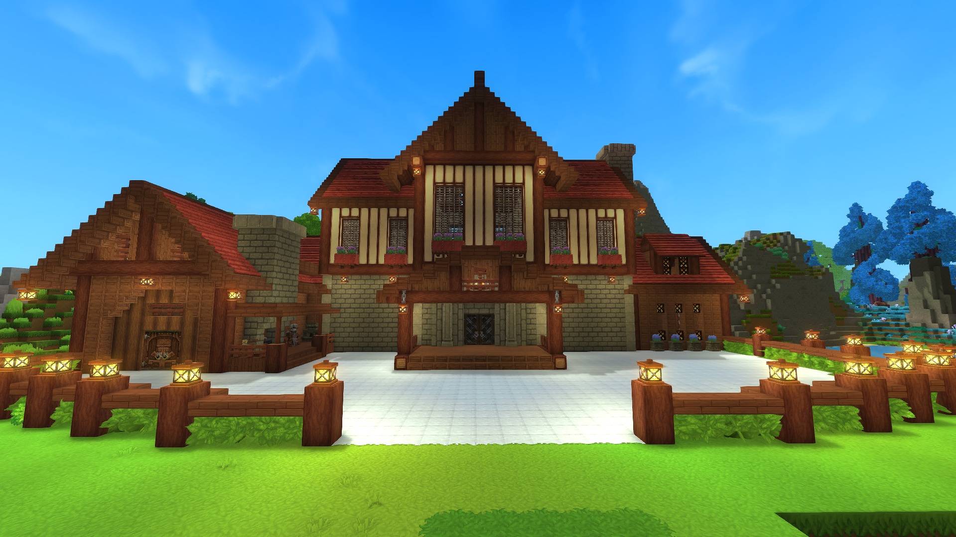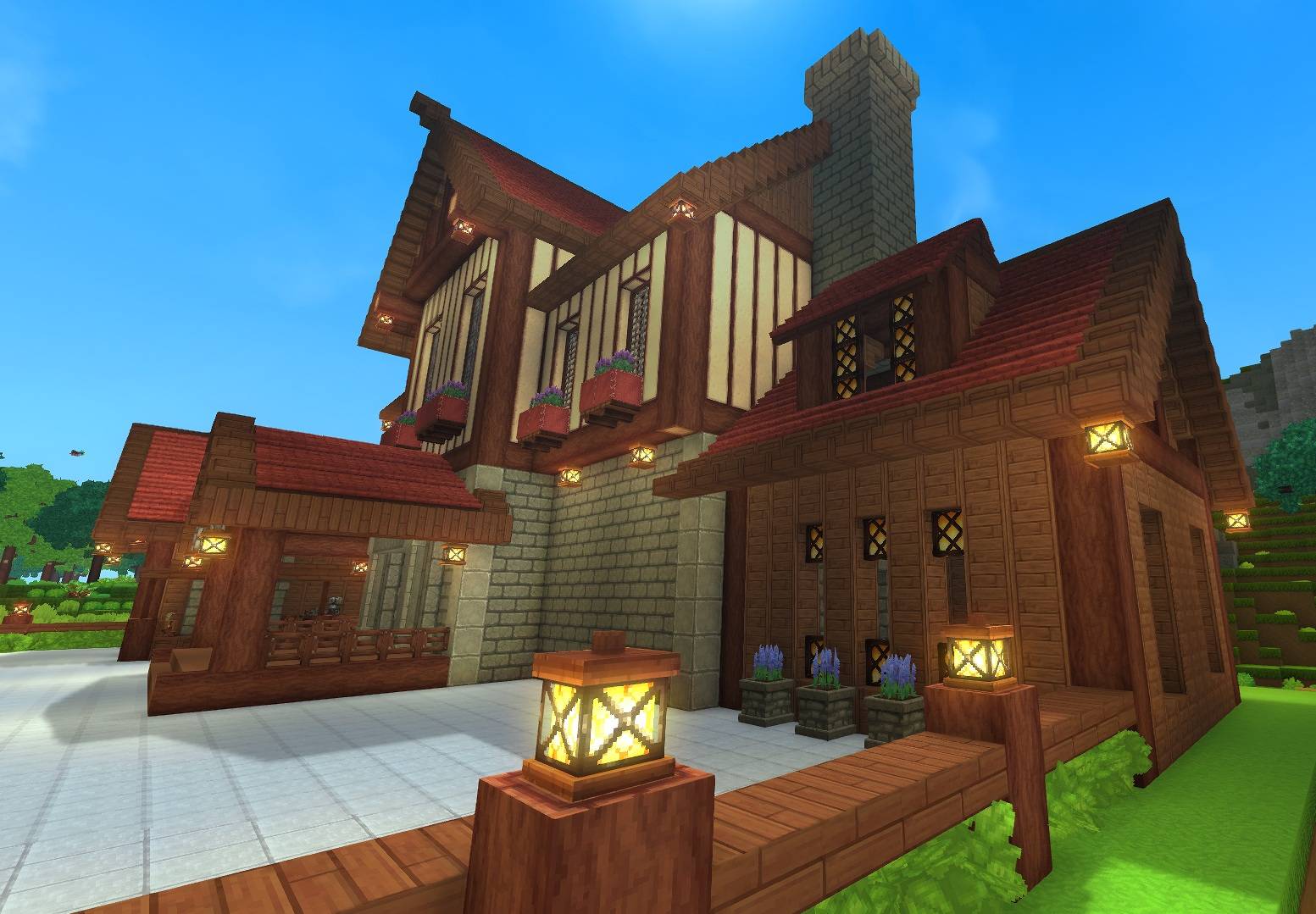 A wooden mansion designed as a stylish, functional base perfectly suited for Exploration Mode base.
